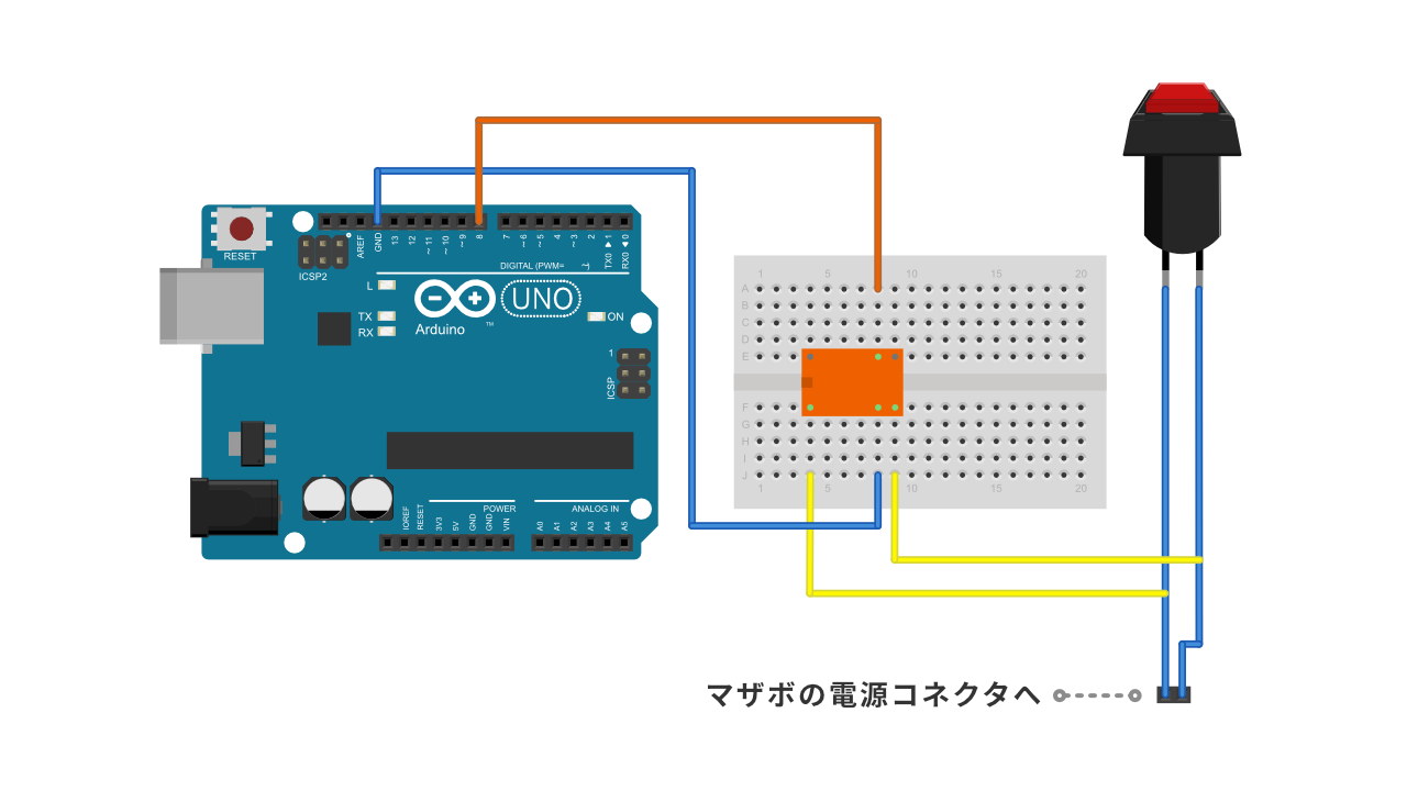 なので、スイッチを入れてすぐ切るために Arduino を追加しています。