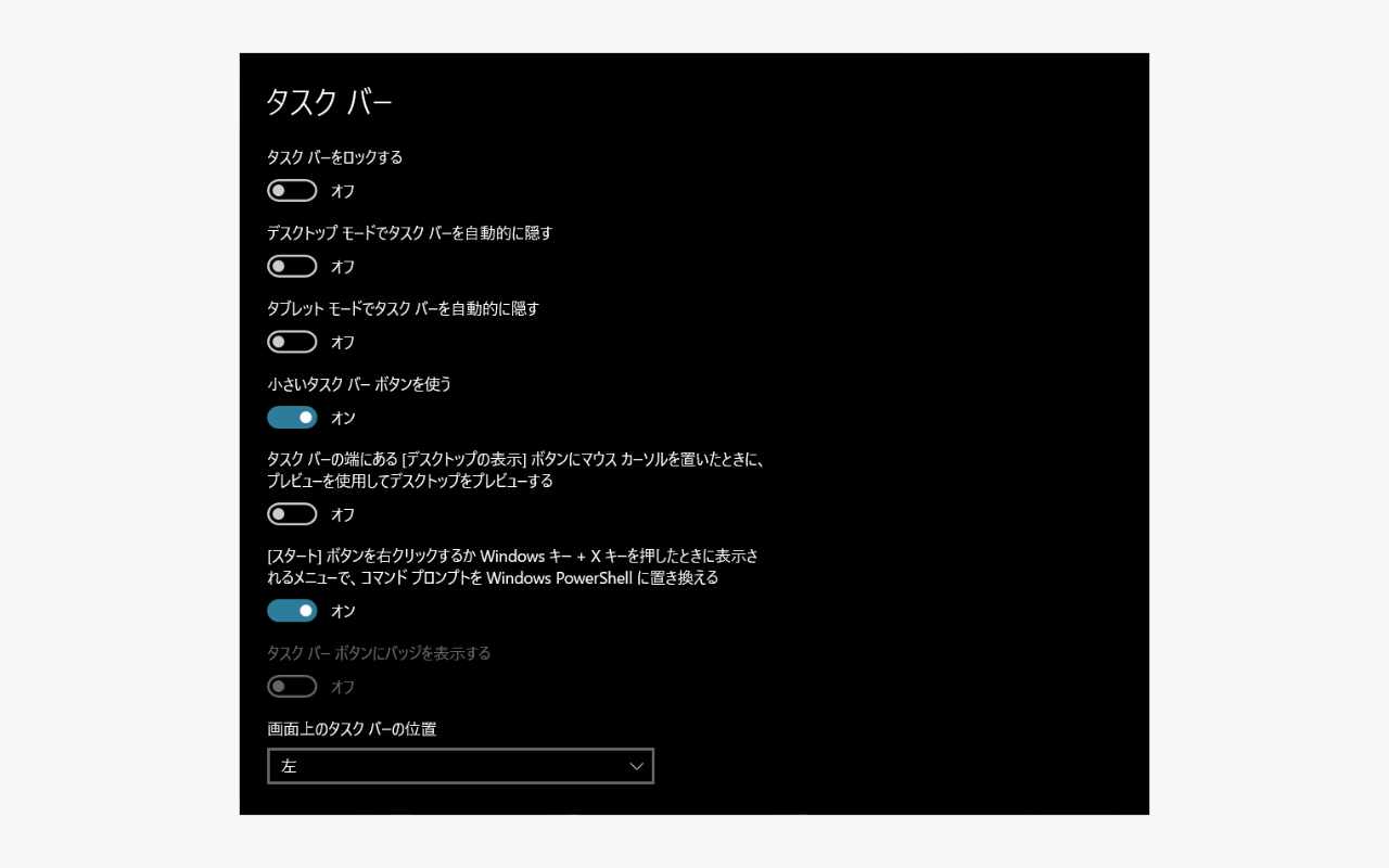 タスクバーを左に置く