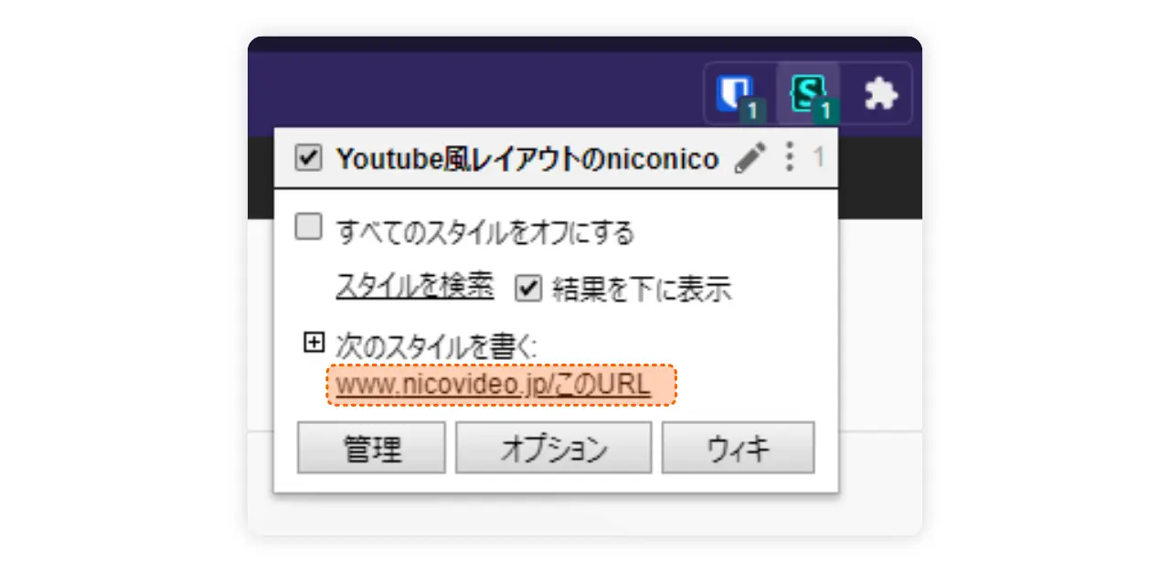 ニコニコ動画に行き、ブラウザ上部の Chrome 拡張機能のアイコンをクリックします。