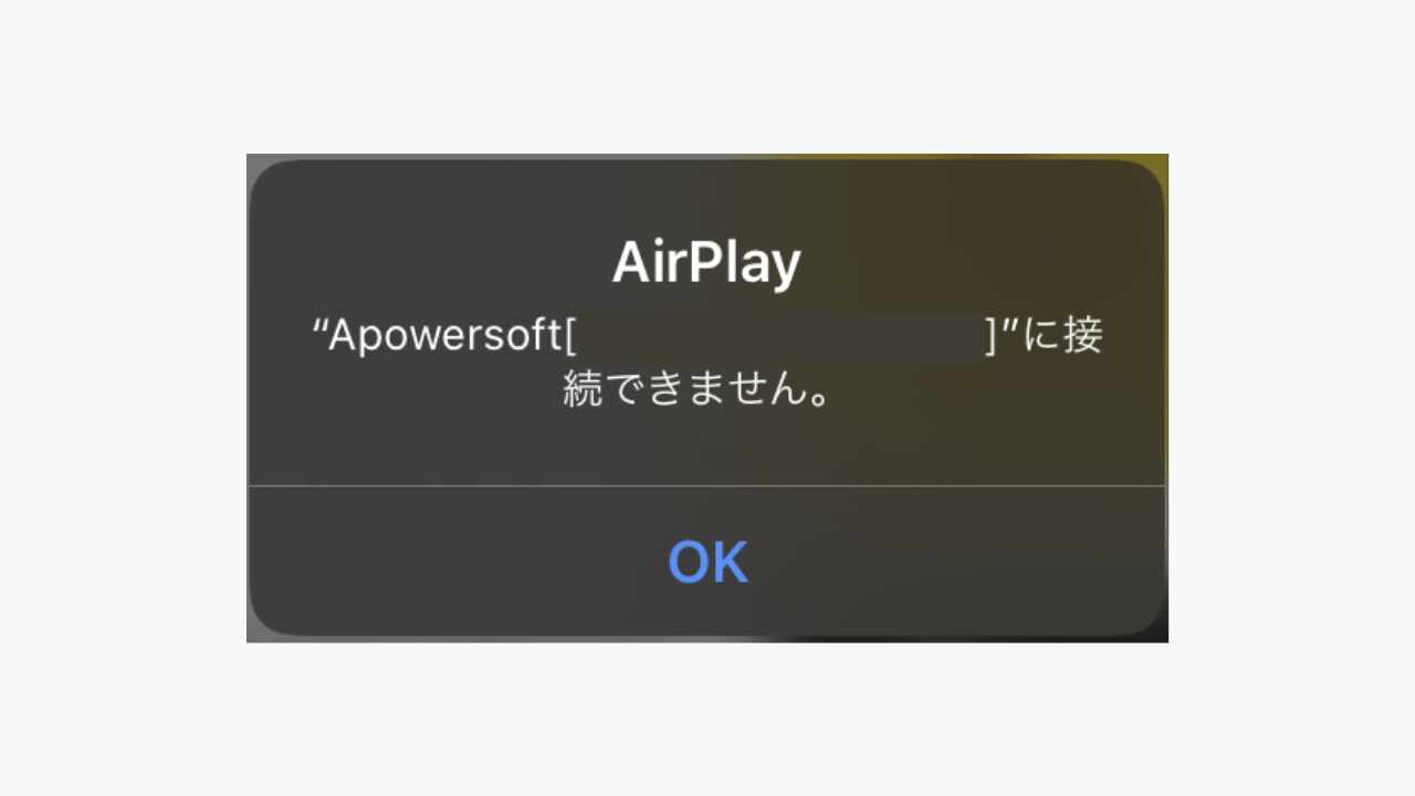 iPad や iPhone から画面ミラーリングで Apowersoft[PC 名] を選択しても、 "AirPlay ~に接続できません。" と表示されます。