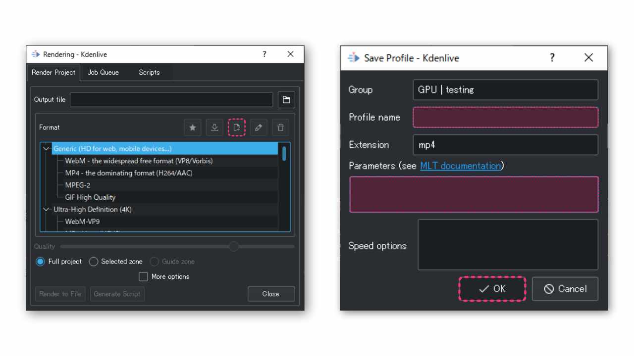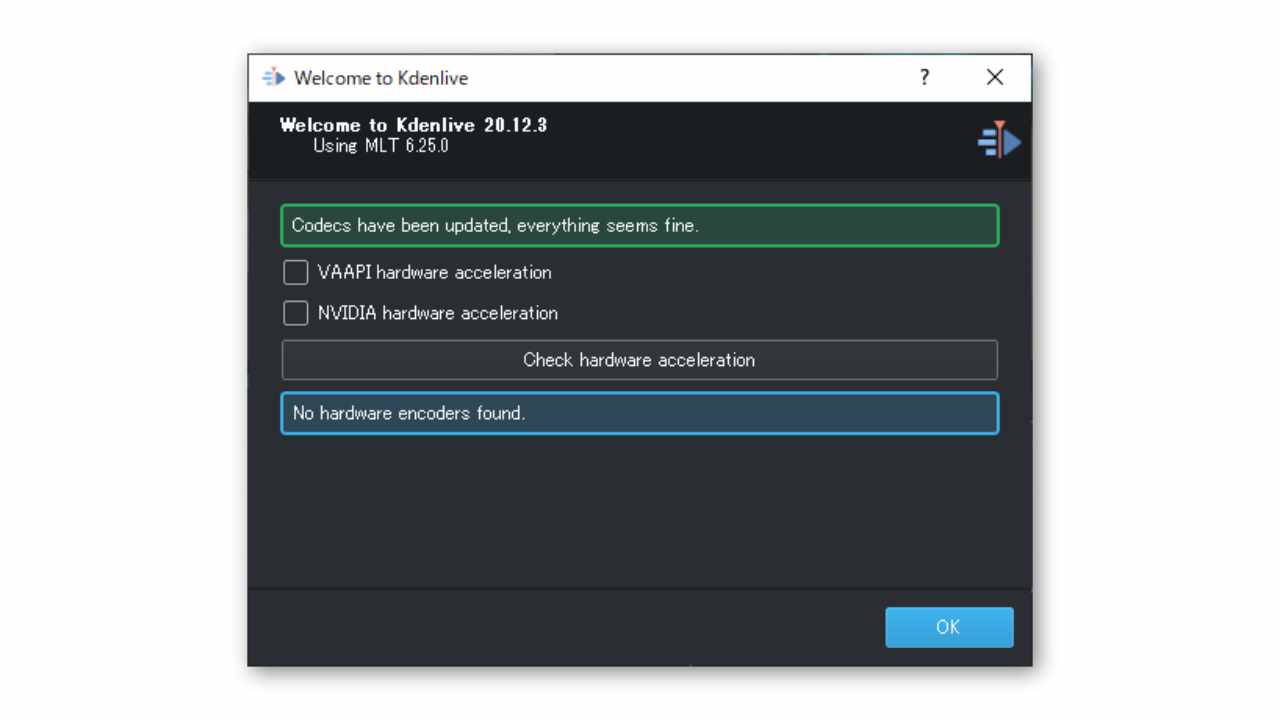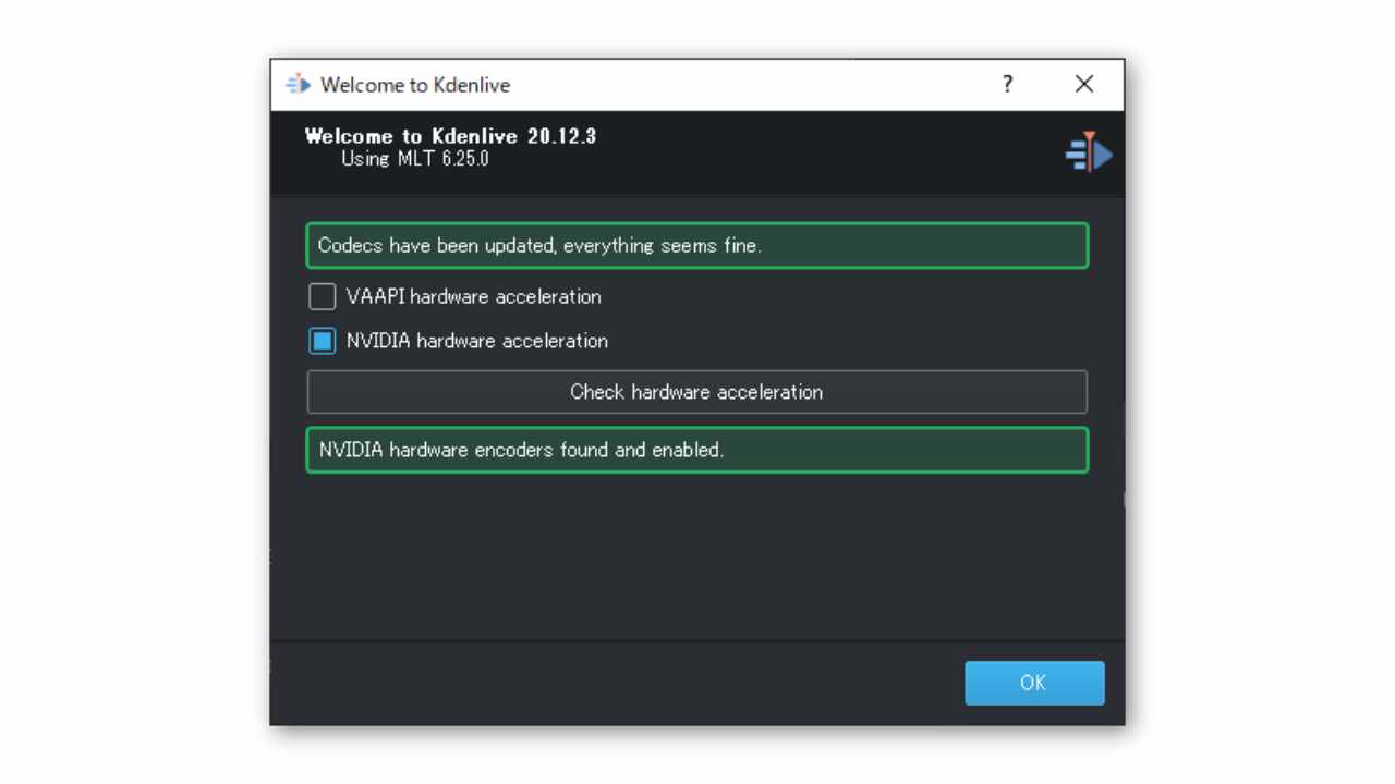 うまく動いているShotcutのMLTffmpegだけをKdenliveに移植することで、ハードウェアエンコード機能を追加してみましょう。