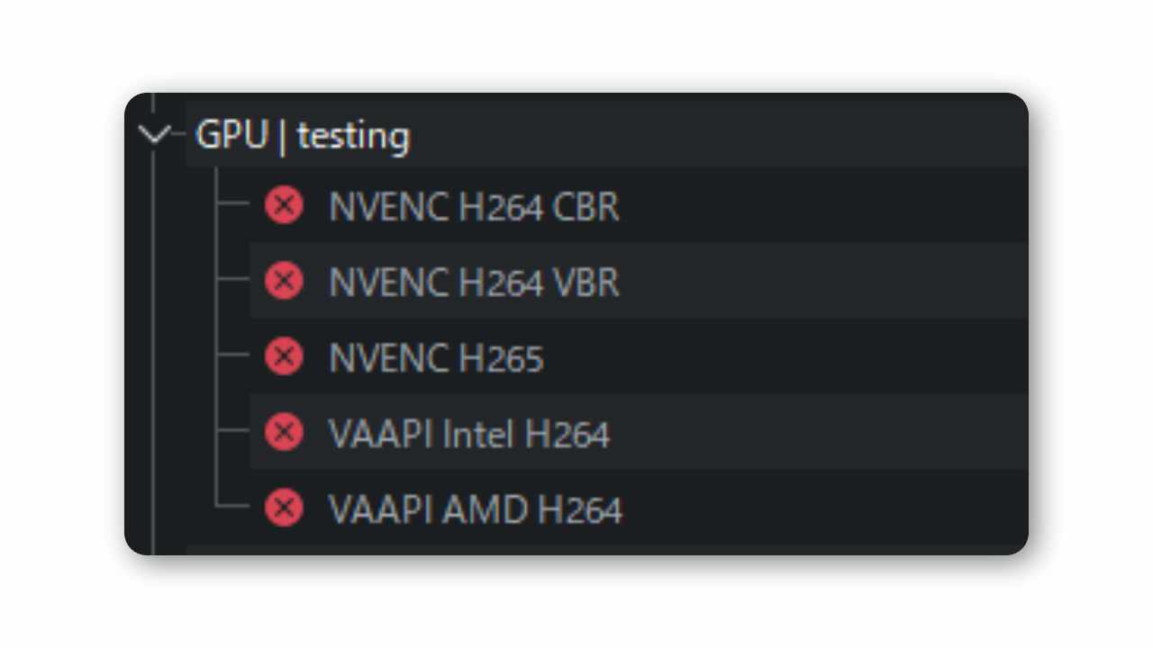 おそらく画像のように「 No hardware encoders found 」と表示されます。